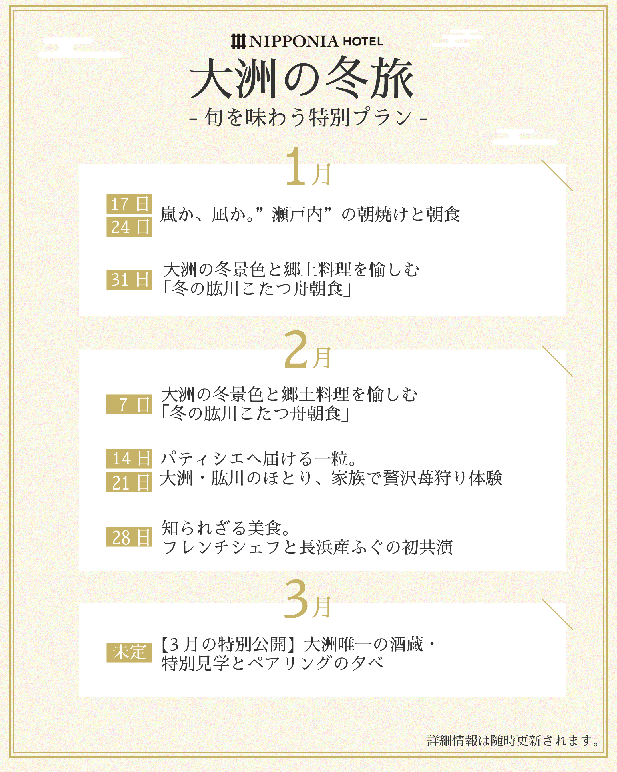 「大洲の冬旅 -旬を味わう特別プラン-」開催について