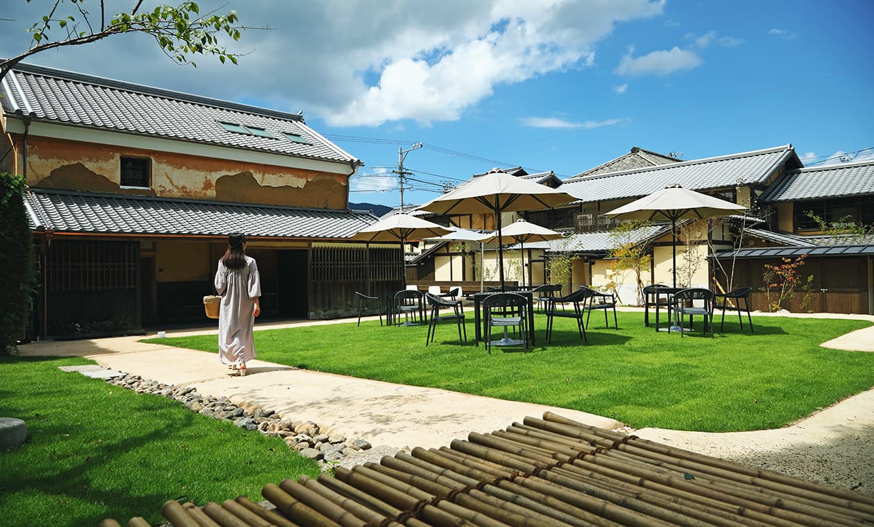 大洲の和食居酒屋『葵』が手がけるカフェ。フードにもドリンクにもこだわっており、愛媛産のハモカツバーガーは絶品。葵CAFE利用者は、『NIPPONIA HOTEL』宿泊者専用の中庭を時間限定(12時~15時のみ)で利用できる。天気が良い日には、葵カフェでドリンクとお気に召したフードを手にとって、中庭テラスで一服を楽しみたい。普段、NIPPONIAホテル大洲城下町に宿泊した方しか利用できない広々と芝生が広がる中庭を時間限定で利用できる。風情ある古民家宿に囲まれながら、大洲の静寂の中で深呼吸する一時は、旅を豊かにしてくれる。