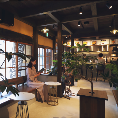 趣ある店内、古民家囲む中庭で、お好きな空間でひと息。