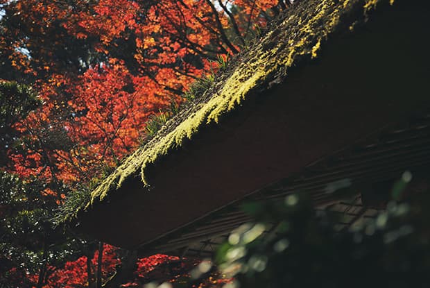 大洲の名所臥龍山荘は、ことさら秋の装いで人々を魅了する。橙、黄、赤に色づいた臥龍山荘の庭園から望む不老庵は、忘れることのできない秋のひとときを心に刻む。また、肱川湖畔に反射する紅葉に映える対岸からの不老庵もひとしお。是非一度目に収めたい。