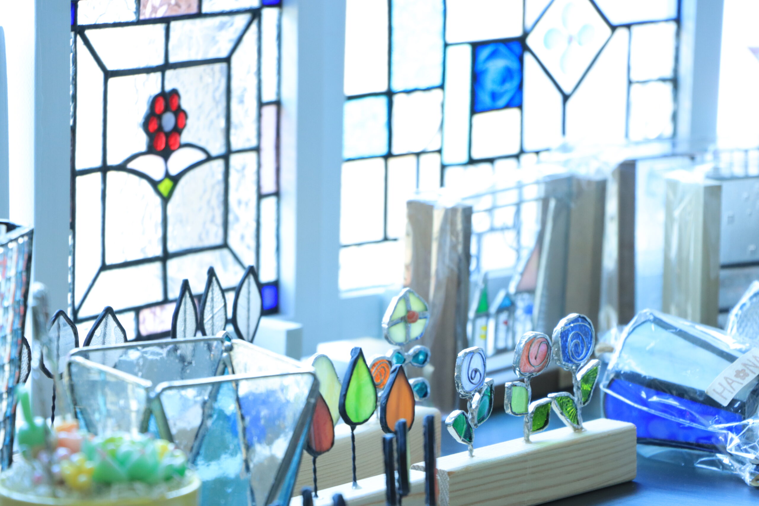 ステンドグラスを用いたオリジナル作品やアイシングクッキーなど、レトロな雰囲気の店舗にあった商品を取り揃えています。